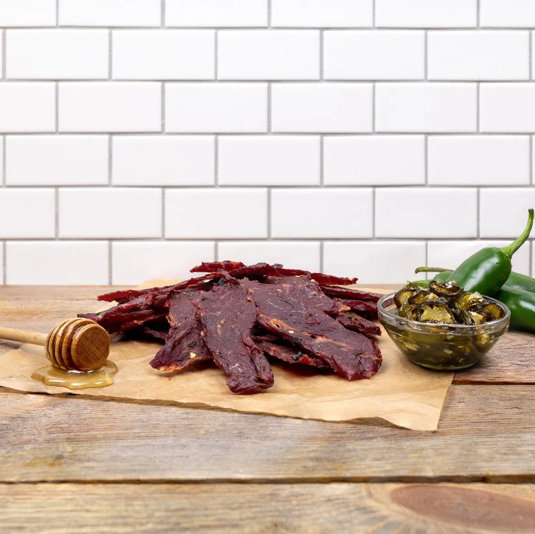 A crave-worthy sweet-heat experience featuring real jalapeño flavor. Tender jerky is coated in a glossy, candied glaze, perfectly balanced with a bright, spicy jalapeño kick. Sweet, smoky, and just the right amount of heat.